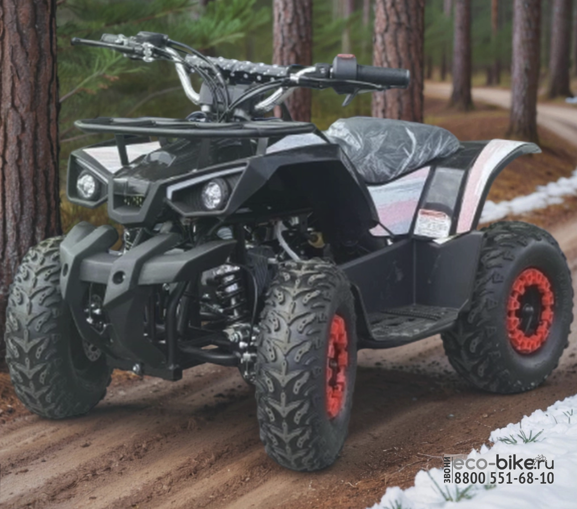 Gbike Snowman 800W оснащен электродвигателем мощностью 800 Вт и гелиевым/литиевым аккумулятором, заряжающимся за 8/15 часов. Запас хода на одном заряде – до 20/50 км (в зависимости от веса ездока и типа дорожного покрытия и АКБ). Большие пневмоколеса с протектором и пружинная подвеска облегчают прохождение бездорожья. У квадрацикла прочный корпус и удобное мягкое седло. Защитные крылья позволят не запачкать одежду при езде по лужам и грязи.