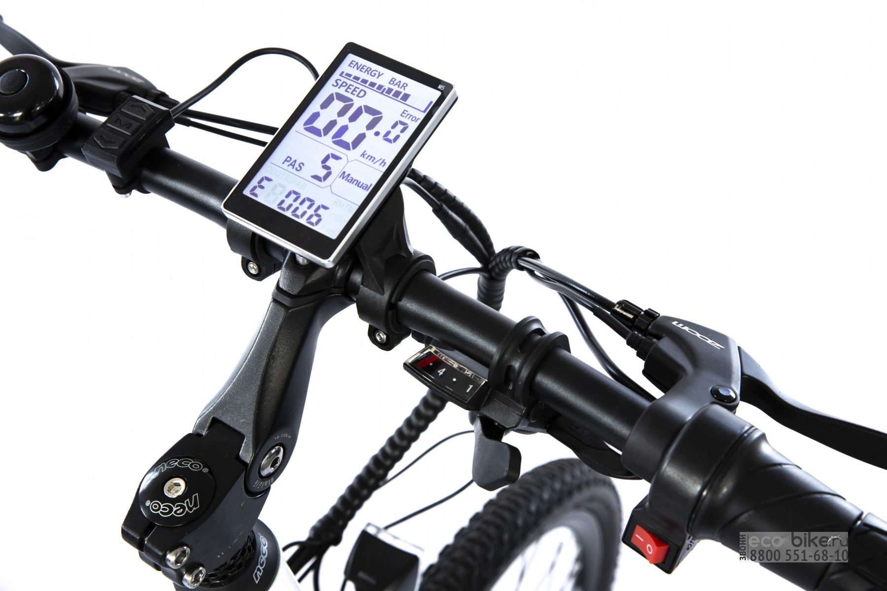 - цветной дисплей расположен в удобном месте над выносом, информацию на нем видно при любом освещении;