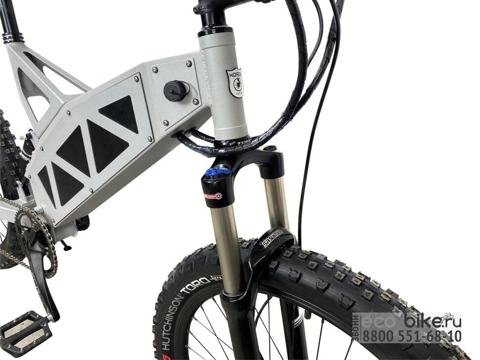 - оснащен 1500 ваттным мотором, разгоняющий велосипед до 60 км/ч;