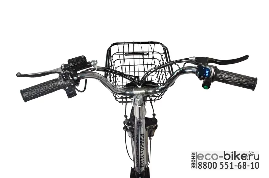 Электровелосипед Minako V.12 LUX - универсальная городская модель, с мощным двигателем, новыми колесами и корзиной. Мотор 240W позволяют набирать скорость до 50 км/ч. Емкий аккумулятор держит заряд до 80 км без подзарядки. Безопасное и плавное торможение обеспечивает барабанная тормозная система. Время зарядки занимает не более 6 часов. Электровелосипед выдерживает нагрузку до 140 кг, при это вес самого велосипеда всего 27 кг.