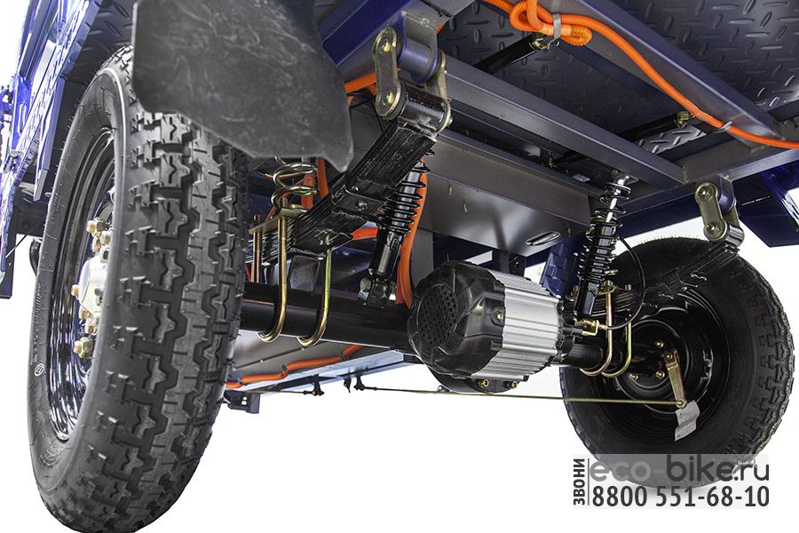 - электрический трицикл Rutrike D4 оснащён вместительным кузовом габаритами 1800 x 1200 x 450 мм (Д х Ш х В), в котором можно перевозить груз общим весом до 1 тонны;