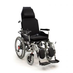 Электроприводное кресло-коляска с возможностью перевода сиденья из сидячего в горизонтальное положение для отдыха, или проведения процедур. Возможность без посторонней помощи в считанные секунды организовать полноценное лежачее место экономит силы и нервы больного за счёт отсутствия передислокаций в коляску и из неё.