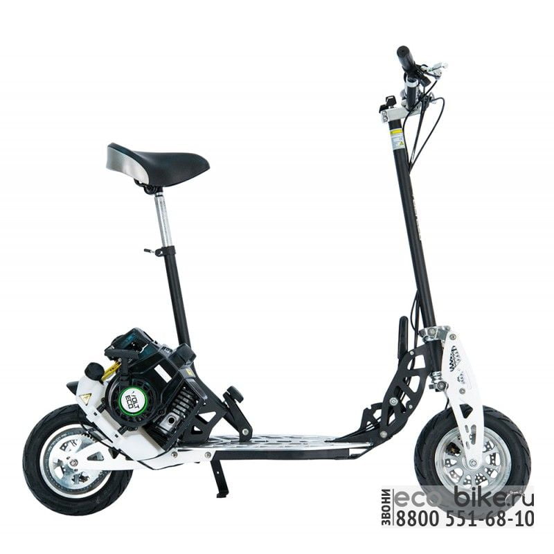 Уникальное двухколесное транспортное средство на карбюраторном двигателе мото-самокат. Не частый представитель в этом классе, имеющий 2е передачи. В нем используется типовой 2х-тактный двигатель, потребляющий смесь бензина и масла. Это популярная модель известного завода изготовителя, изготовленная по нашему заказу, в соответствии запросов наших дилеров и покупателей. Версия оффроад, на пневматиках с внедорожным рельефом. Шоссейная версия , на сликах.